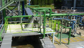 最初沈殿池や最終沈殿池で沈んだ泥は、機械で水分を取ってやり、ケーキと呼ばれる土の固まりにします。