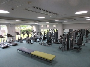 - 主な器具:【有酸素系】トレッドミル、ステッパー(クライマー)、エアロバイク(リカンベントあり)【上半身】チェストプレス、ラットプル、マルチプレス【下半身】レッグエクステンション、カール、レッグプレス、おし丸、アダクション、アブダクション、あけ丸【背筋】45度バックエクステンションベンチ、引き丸、ラット・ロウ【腹筋】ロータリートーソ、アブドミナル、ベントレックアブドミナル、【上腕】アームカール、アームエクステンション【フリーウェイト】フラットベンチ、インクライン・デクラインベンチ (注意)ダンベル重量1から16キログラムまで、リストバンド型ウェイト0.25から1.5キログラム【リハビリ】平行棒、肩回し、手首(回外・回内)【ストレッチ・体幹・コンディショニング】アーチ型、ぶら下がり、懸垂、ふくらはぎ伸ばし、バランスボール、ギムニクボール、ストレッチポール、ゴムチューブなど