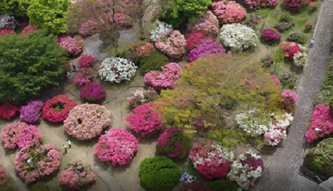 久留米つつじや平戸つつじなど100品種、61,000株を植栽しており、それぞれの品種が順次見頃を迎えるため、例年、4月中旬から5月初旬の約1か月間、つつじを楽しむことができます。
