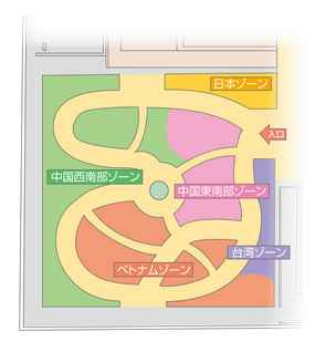 高さ約9メートルの開放的な室内に110種類の原種ツバキを展示しており、世界でも類を見ないほど多くの品種を鑑賞できます。ベトナム、中国西南部、中国東南部、台湾、日本など、地域ごとにレイアウトし展示しています。