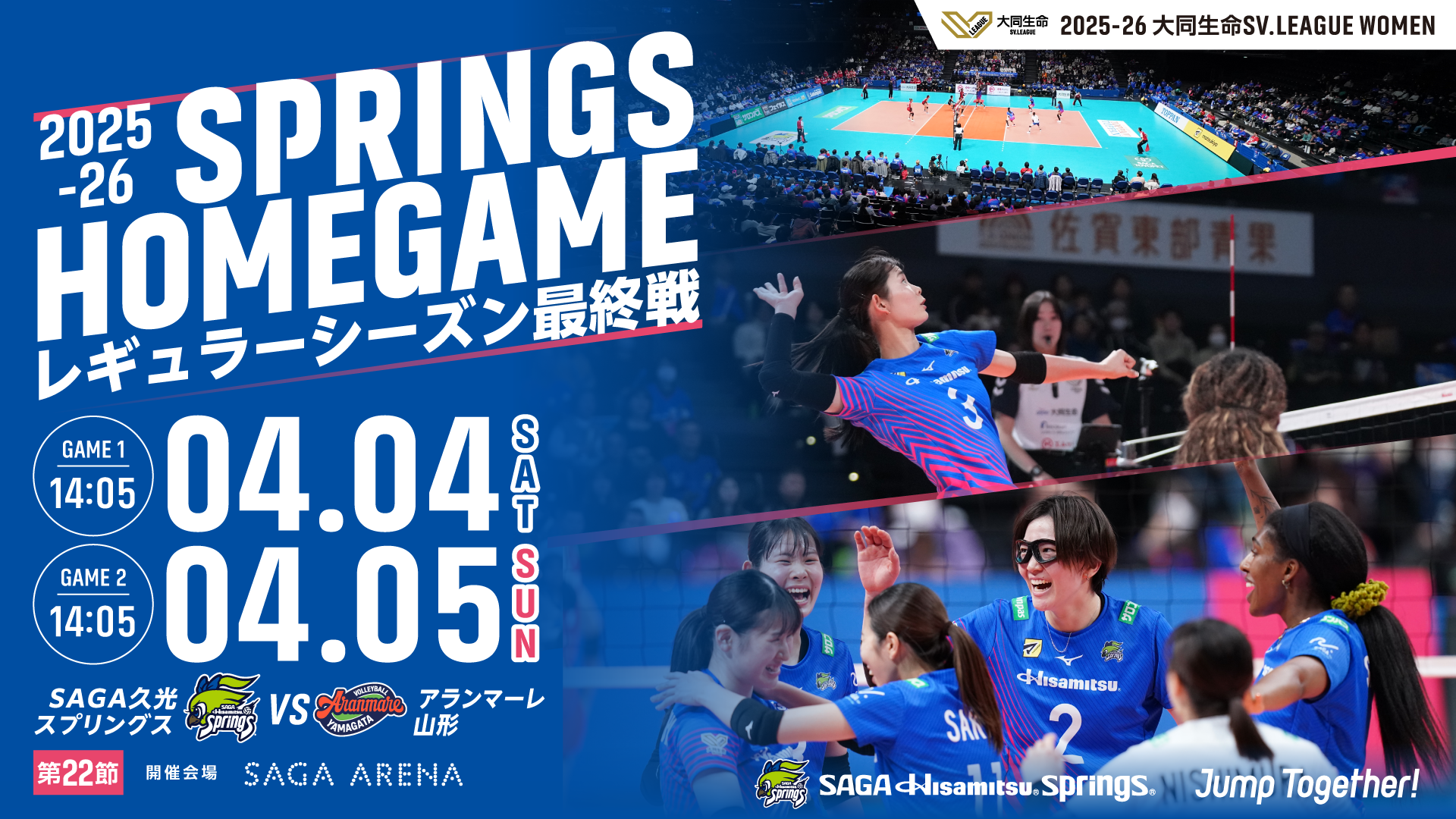 筑後川流域クロスロード協議会は「SAGA久光スプリングス応援宣言」に基づき、プロスポーツの力を活かした地域活性化に取り組んでいます。4月4日と5日の2日間、SAGA久光スプリングスのホームゲームが開催されます。みんなでSAGA久光スプリングスを応援しましょう!!