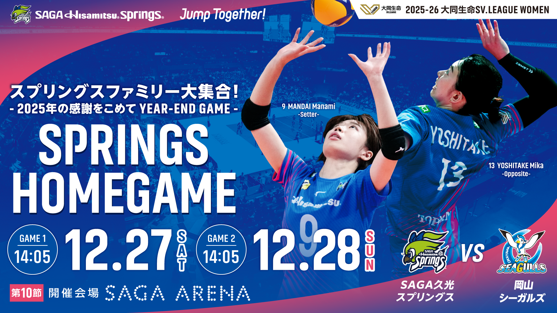 筑後川流域クロスロード協議会は「SAGA久光スプリングス応援宣言」に基づき、プロスポーツの力を活かした地域活性化に取り組んでいます。12月27日(土曜日)と28日(日曜日)の2日間、SAGAアリーナにて「SAGA久光スプリングス」のホームゲームが開催されます。みんなでSAGA久光スプリングスを応援しましょう!!