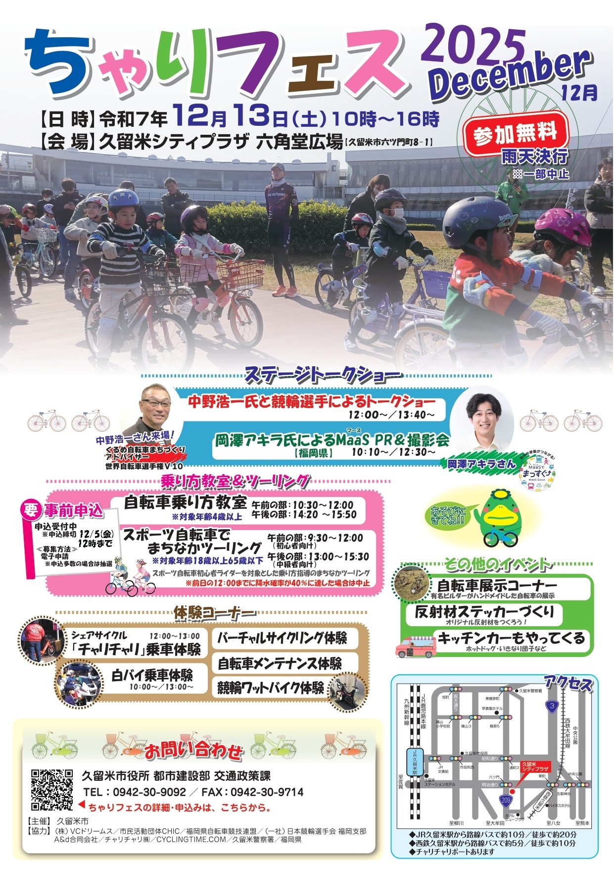 トップ > 組織からさがす > 都市建設部交通政策課 > お知らせ > 「ちゃりフェス2025」を開催します。